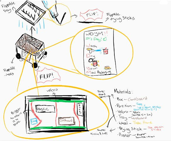 On top of that, the cover of the box served as a drying rack for recyclables after being washed. We also designed and put up a poster on how we can recycle better.
