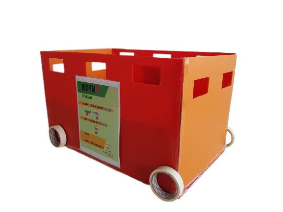 We created a portable box with wheels using plastic sheets, where users could separate their recyclables into different sections, with each section being adjustable.